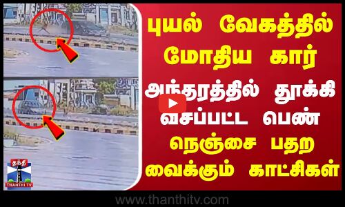 புயல் வேகத்தில் மோதிய கார்! அந்தரத்தில் தூக்கி வீசப்பட்ட பெண்! பதற வைக்கும் காட்சிகள்