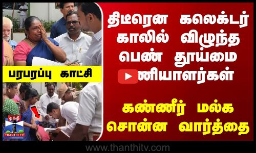இந்நிலையில், மாவட்ட ஆட்சியரிடம் மனு அளிக்க வந்த சில பெண் தூய்மை பணியாளர்கள், திடீரென அவரது காலில் விழுந்து, கண்ணீர் மல்க முறையிட்டனர். அவர்களிடம் மாவட்ட ஆட்சியர் பவன் குமார், விசாரணை நடத்தி, நடவடிக்கை எடுக்கப்படும் என உறுதி அளித்தார்.