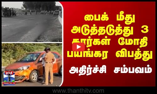 பைக் மீது அடுத்தடுத்து 3 கார்கள் மோதி பயங்கர விபத்து.. அதிர்ச்சி சம்பவம்