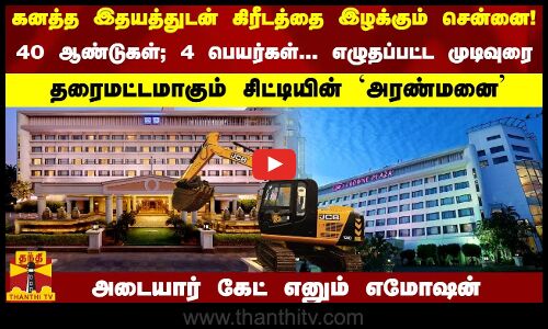 தலைநகர் சென்னையில் உள்ள, கிரவுன் பிளாசா நட்சத்திர விடுதி அடுத்த மாதத்துடன் மூடப்படுவதாக நிர்வாகம் அறிவித்துள்ளது. நிர்வாகத்தின் திடீர் முடிவு, சுற்று வட்டாரத்தில் தொழில் செய்தவர்களை உணர்வு ரீதியாக பாதித்துள்ளது. இதுகுறித்து விளக்குகிறது இந்த செய்தி தொகுப்பு...