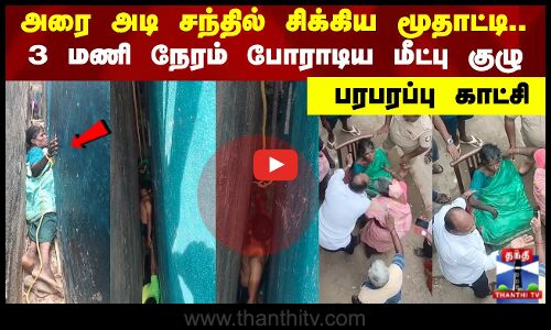 அரை அடி சந்தில் சிக்கிய மூதாட்டி.. 3 மணி நேரம் போராடிய மீட்பு குழுபரபரப்பு காட்சி