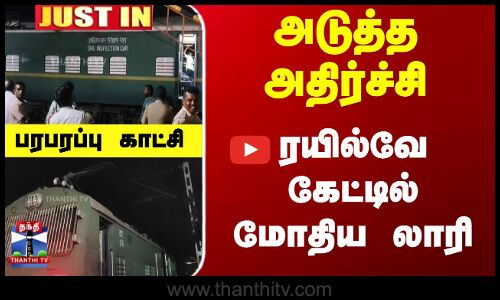 அடுத்த அதிர்ச்சி... ரயில்வே கேட்டில் மோதிய லாரி-நேர இருந்த பெரும் விபரீதம்