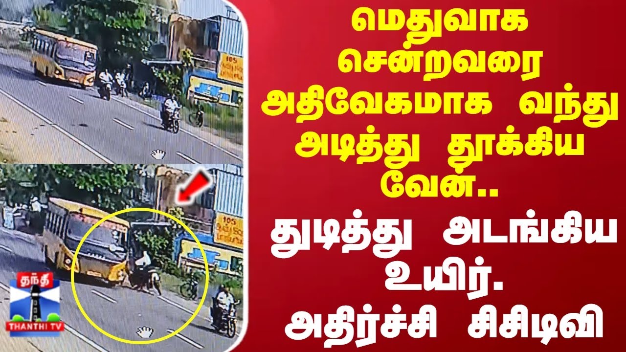 ஆரணி அருகே இருசக்கர வாகனம் மீது தனியார் பள்ளி வாகனம் மோதி, ஒருவரது உயிரை பறித்த பரபரப்பு சிசிடிவி காட்சி வெளியாகியுள்ளது. நெசல் கூட்ரோடு அருகே சேகர் என்பவர் ஓட்டிச் சென்ற தனியார் பள்ளி வாகனம், முன்னாள் சென்ற இருசக்கர வாகனம் மீது மோதிவிட்டு சென்றது. இந்த விபத்தில், அருணகிரி சத்திரத்தை சேர்ந்த மணிவண்ணன் என்பவர் உயிரிழந்த நிலையில், ஓட்டுநர் சேகர் கைது செய்யப்பட்டுள்ளார். இந்நிலையில், பைக் மீது பள்ளி வாகனம் அதிவேகமாக மோதும் பதைபதைக்க வைக்கும் சிசிடிவி காட்சி வெளியாகியுள்ளது.