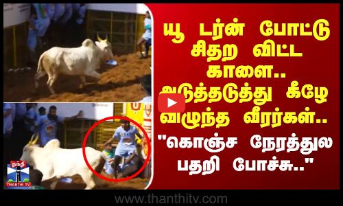 Avaniyapuram Jallikattu | யூ டர்ன் போட்டு சிதற விட்ட காளை.. அடுத்தடுத்து கீழே விழுந்த வீரர்கள்..