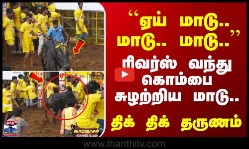 Avaniyarpuram Jallikattu | ``ஏய் மாடு.. மாடு.. மாடு..’’ - ரிவர்ஸ் வந்து கொம்பை சுழற்றிய மாடு..
