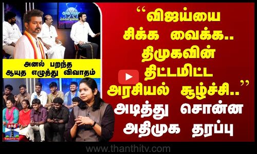 Ayutha Ezhuthu Makkal Munnal | "விஜய்யை சிக்க வைக்க ``திமுகவின் திட்டமிட்ட அரசியல் சூழ்ச்சி.. | அடித்து சொன்ன அதிமுக தரப்பு.. | அனல் பறந்த ஆயுத எழுத்து விவாதம்