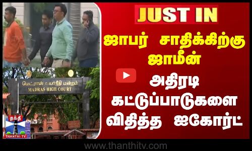 #JUSTIN | ஜாபர் சாதிக்கிற்கு ஜாமீன் | அதிரடி கட்டுப்பாடுகளை விதித்த ஐகோர்ட் | Chennai High Court