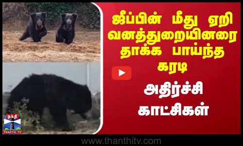 ஜீப்பின் மீது ஏறி வனத்துறையினரை தாக்க பாய்ந்த கரடி - அதிர்ச்சி காட்சிகள்