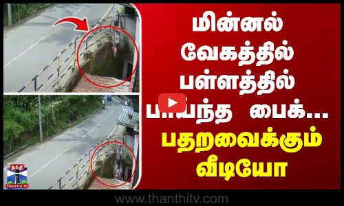 மின்னல் வேகத்தில் பள்ளத்தில் பாய்ந்த பைக்... பதறவைக்கும் வீடியோ