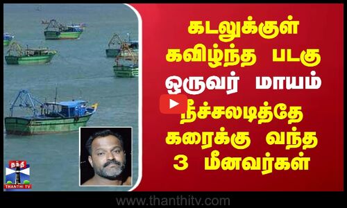 Rameshwaram | கடலுக்குள் கவிழ்ந்த படகு - ஒருவர் மாயம்.. நீச்சலடித்தே கரைக்கு வந்த 3 மீனவர்கள்