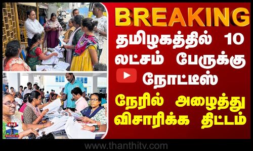 BREAKING || தமிழகத்தில் 10 லட்சம் பேருக்கு நோட்டீஸ்... நேரில் அழைத்து விசாரிக்க திட்டம்