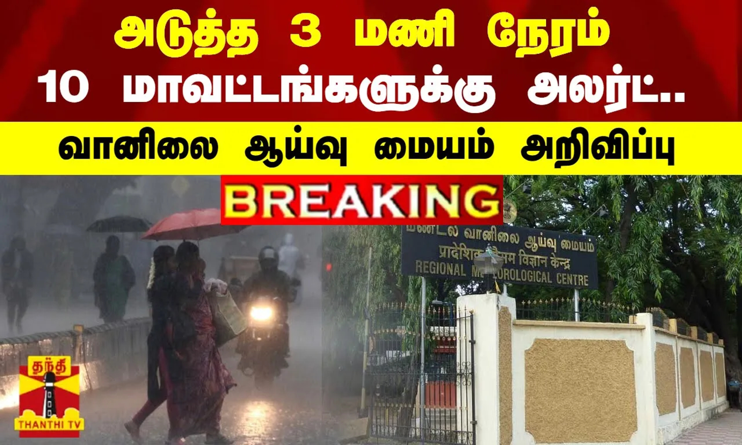 #BREAKING | அடுத்த 3 மணி நேரம்.. 10 மாவட்டங்களுக்கு அலர்ட்.. -வானிலை ஆய்வு மையம் அறிவிப்பு