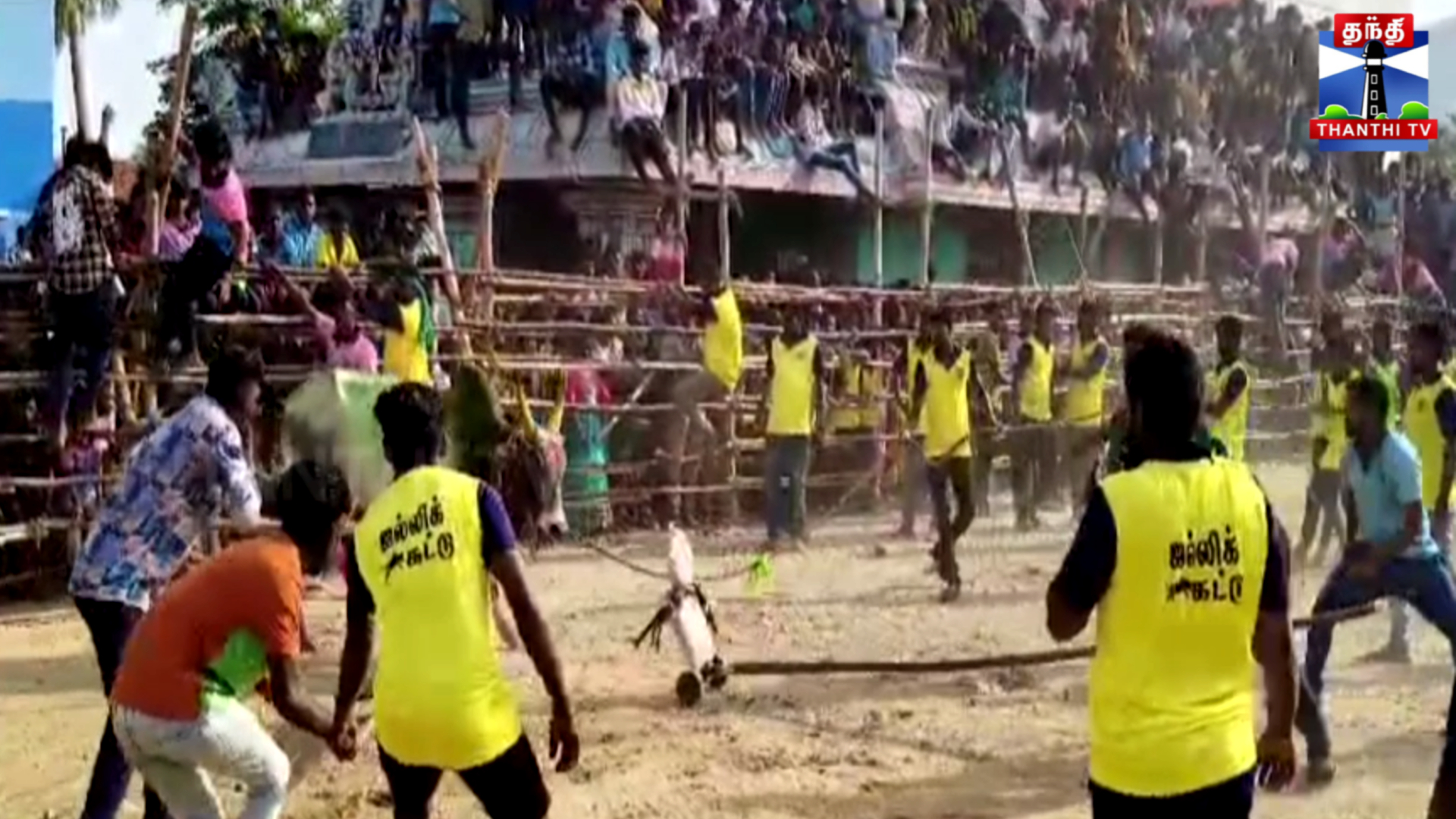 எருதாட்டத்தில் காவலரை முட்டி தூக்கி வீசிய காளை - பரபரப்பு