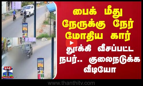 பைக் மீது நேருக்கு நேர் மோதிய கார் - தூக்கி வீசப்பட்ட நபர்.. குலைநடுக்க வீடியோ