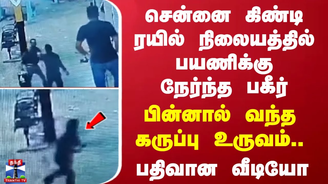 சென்னை கிண்டி ரயில் நிலையத்தில் பயணிக்கு நேர்ந்தபகீர்- பின்னால் வந்த கருப்பு உருவம்-வெளியான சிசிடிவி