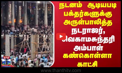 நடனம் ஆடியபடி பக்தர்களுக்கு அருள்பாலித்த நடராஜர், சிவகாமசுந்தரி அம்பாள் - கண்கொள்ளா காட்சி