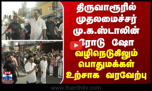 திருவாரூரில் முதலமைச்சர் மு.க.ஸ்டாலின் ரோடு ஷோ -வழிநெடுகிலும் பொதுமக்கள் உற்சாக வரவேற்பு