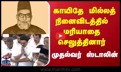 காயிதே மில்லத்தின் 130வது பிறந்தநாளையொட்டி, சென்னை திருவல்லிக்கேணியில் உள்ள நினைவிடத்தில் முதலமைச்சர் ஸ்டாலின் மரியாதை செலுத்தினார்.