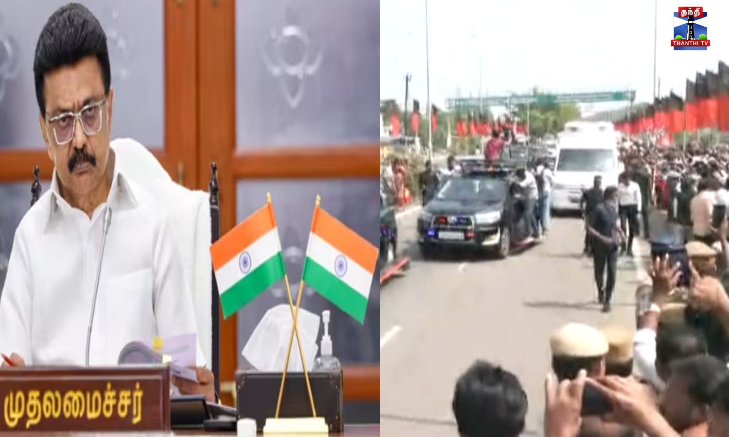 நெல்லை மாவட்டத்தில் அரசு மற்றும் கட்சி நிகழ்வுகளில் கலந்து கொள்வதற்காக தூத்துக்குடி விமான நிலையத்திலிருந்து கார் மூலம் நெல்லைக்கு வருகை தந்துள்ளார் முதலமைச்சர் ஸ்டாலின்.
