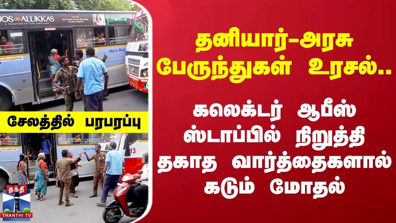 சேலத்தில் தனியார்-அரசு பேருந்துகள் உரசல் - நடத்துநர்கள் மாறி மாறி வார்த்தை மோதல்