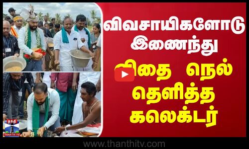 விவசாயிகளோடு இணைந்து விதை நெல் தெளித்த மாவட்ட ஆட்சியர்