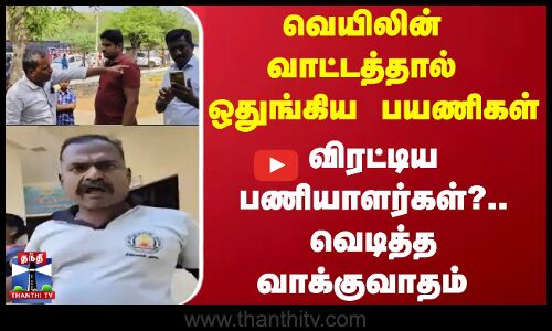 வெயிலின் வாட்டத்தால் ஒதுங்கிய பயணிகள்..விரட்டிய பணியாளர்கள்?..வெடித்த வாக்குவாதம்