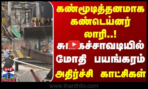 கண்மூடித்தனமாக கண்டெய்னர் லாரி..! சுங்கசாவடியில் மோதி பயங்கரம்.. அதிர்ச்சி காட்சிகள்