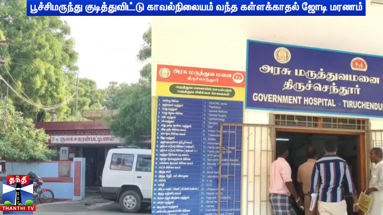 இதையடுத்து என்ன காரணத்திற்காக இவர்கள் பூச்சி மருந்து குடித்தார்கள்? எங்கு குடித்தார்கள்? என்ன காரணத்திற்காக குலசேகரன்பட்டினம் வந்தார்கள்? என்பது குறித்து போலீசார் விசாரணை மேற்கொண்டு வருகின்றனர்.