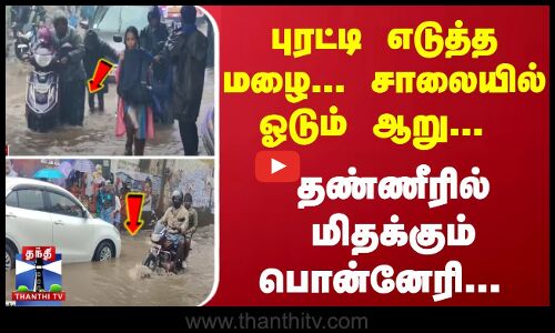 புரட்டி எடுத்த மழை... சாலையில் ஓடும் ஆறு... தண்ணீரில் மிதக்கும் பொன்னேரி...