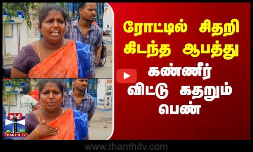 ரோட்டில் சிதறி கிடந்த ஆபத்து.. கண்ணீர் விட்டு கதறும் பெண்