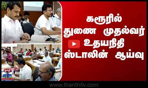 கரூரில், வளர்ச்சி திட்ட பணிகள் தொடர்பான ஆய்வு கூட்டம் துணை முதலமைச்சர் உதயநிதி ஸ்டாலின் தலைமையில் நடைபெற்றது. ஆட்சியர் அலுவலகத்தில் நடைபெற்ற கூட்டத்தில், எம்.எல்.ஏ செந்தில்பாலாஜி, கரூர் பாராளுமன்ற உறுப்பினர் ஜோதிமணி அரசுத்துறை அதிகாரிகள் உள்பட பலர் பங்கேற்றனர். கரூர் மாவட்டத்தில் நடைபெற்று வரும் வளர்ச்சி திட்ட பணிகள், முடிவுற்ற திட்டங்களின் நிலை குறித்து அனைத்து துறை அதிகாரிகளிடம் கேட்டறிந்த துணை முதல்வர் உதயநிதி ஸ்டாலின், பணிகளை விரைந்து முடிக்க சில ஆலோசனைகளையும் அதிகாரிகளுக்கு வழங்கினார்.