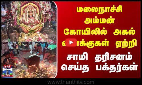 மலைநாச்சி அம்மன் கோயிலில் அகல் விளக்குகள் ஏற்றி சாமி தரிசனம் செய்த பக்தர்கள்