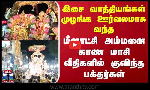 இசை வாத்தியங்கள் முழங்க ஊர்வலமாக வந்த மீனாட்சி அம்மனை காண மாசி வீதிகளில் குவிந்த பக்தர்கள்