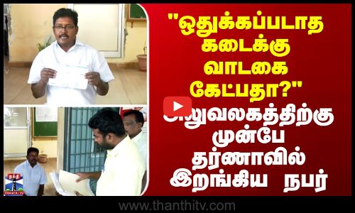 dharna protest || office || "ஒதுக்கப்படாத கடைக்கு வாடகை கேட்பதா?" - தர்ணாவில் இறங்கிய நபர்