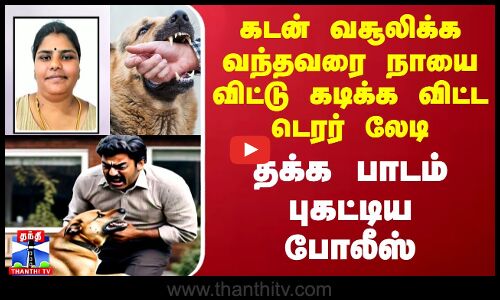 கடன் வசூலிக்க வந்தவரை நாயை விட்டு கடிக்க விட்ட டெரர் லேடி..தக்க பாடம் புகட்டிய போலீஸ்