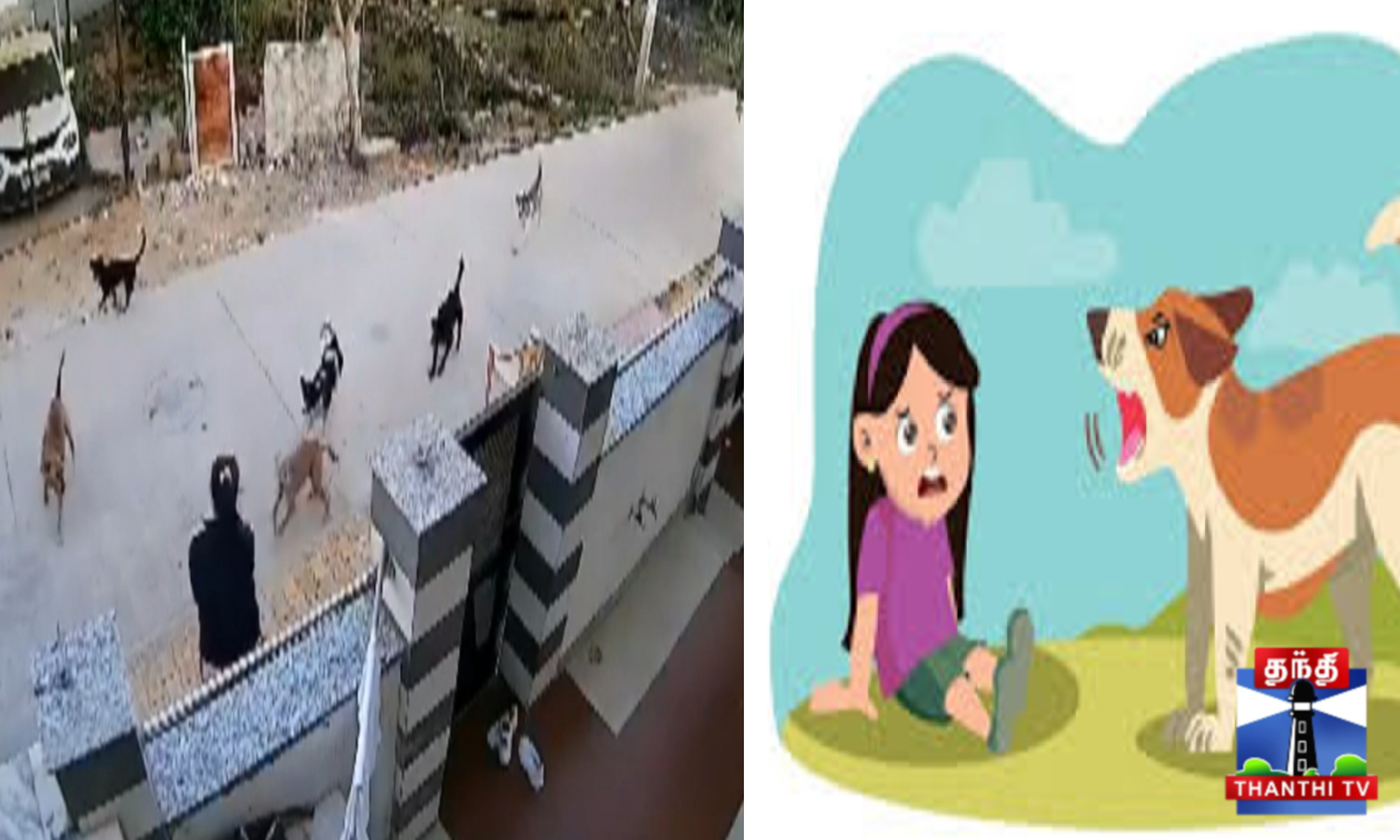 - செய்வதறியாது அந்த பெண் அலறி துடித்த நிலையில், சாலையில் வந்த பெண் ஒருவர், டிபன் பாக்சை வீசி விரட்டினார். அருகில் இருந்தவர்களும் உடனே வந்து நாய்களை விரட்டி இளம்பெண்ணை காப்பாற்றினர்.