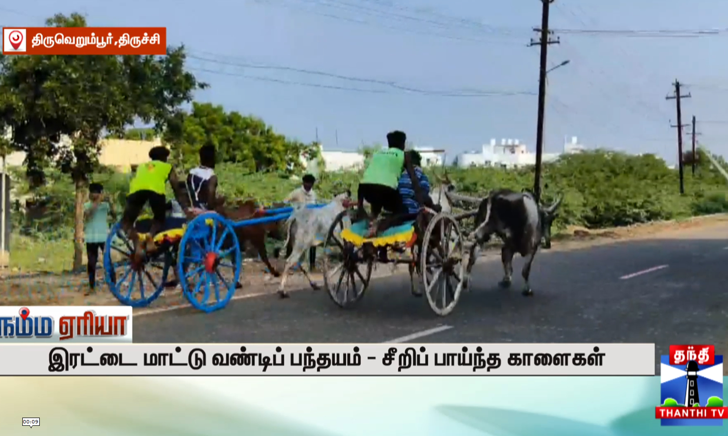 இரட்டை மாட்டு வண்டி பந்தையம் - சீறி பாயந்த காளைகள்