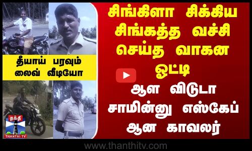 சிங்கிளா சிக்கிய சிங்கத்த வச்சி செய்த வாகன ஓட்டி.. ஆள விடுடா சாமின்னு எஸ்கேப் ஆன காவலர் -லைவ் வீடியோ