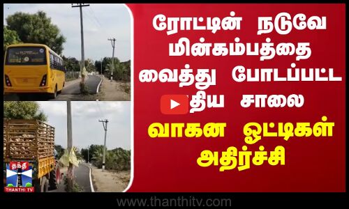 திருப்பத்தூர் அருகே சாலை நடுவே உள்ள மின் கம்பத்தை அகற்றாமல் புதிய தார் சாலை அமைத்திருப்பதால் வாகன ஓட்டிகள் சிரமத்தை சந்தித்து வருகின்றனர். திருப்பத்தூர் மாவட்டத்தை அடுத்த மற்றப்பள்ளி ஊராட்சியில், 1 கோடியே 70 லட்சம் ரூபாய்க்கு புதிய தார்ச்சாலை அமைக்கப்பட்டுள்ளது. ஆனால் அங்கிருக்கும் மின்கம்பத்தை அகற்றாமல் தார்சாலை அமைத்துள்ள நிலையில், விபத்துக்கள் ஏற்படும் அபாயம் ஏற்பட்டுள்ளது.