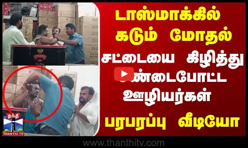 டாஸ்மாகில் கடும் மோதல் | சட்டையை கிழித்து சண்டைபோட்ட ஊழியர்கள் | பரபரப்பு வீடியோ