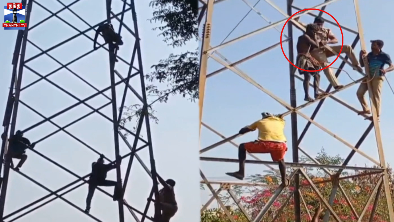 உயர்மின் கோபுரத்தில் ஏறிய நபர் பாதுகாப்பாக மீட்பு