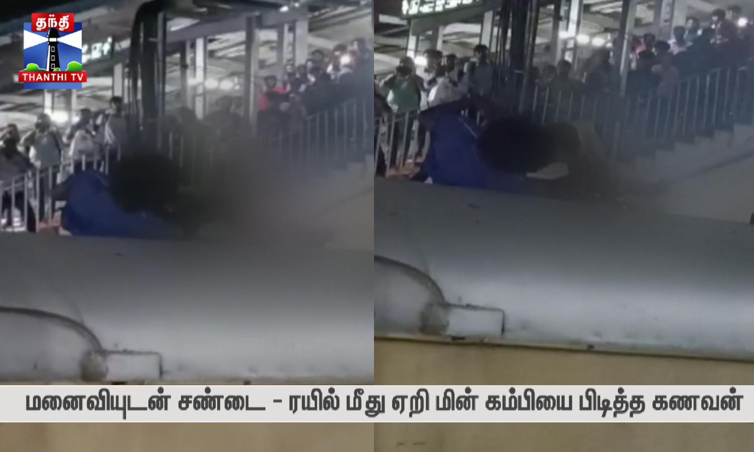மனைவியுடன் சண்டை - ரயில் மீது ஏறி மின் கம்பியை பிடித்த கணவன்
