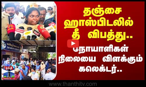 தஞ்சை அரசு மருத்துவமனையில் தீ விபத்து ஏற்பட்ட நிலையில், அங்கு ஆய்வு செய்த ஆட்சியர் செய்தியாளர்களை சந்தித்தார்...