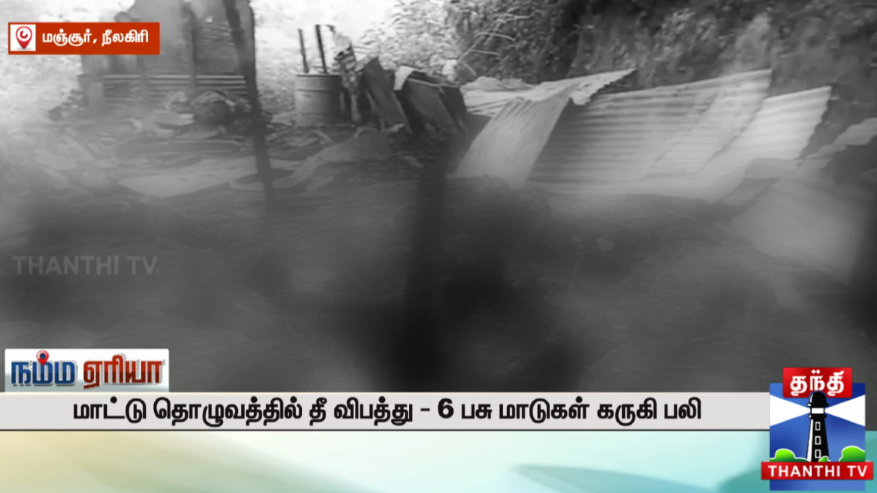 நீலகிரியில் மாட்டுத்தொழுவத்தில் ஏற்பட்ட தீ விபத்தில் 6 பசு மாடுகள் உயிரிழந்த சம்பவம் சோகத்தை ஏற்படுத்தியுள்ளது.