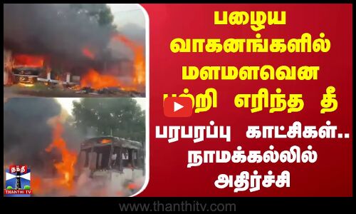 பழைய வாகனங்களில் மளமளவென பற்றி எரிந்த தீ.. பரபரப்பு காட்சிகள்.. நாமக்கல்லில் அதிர்ச்சி