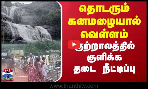 தொடரும் கனமழையால் வெள்ளம்... குற்றாலத்தில் குளிக்க தடை நீட்டிப்பு