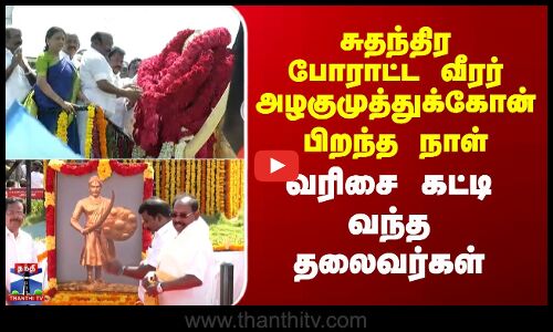 சுதந்திரப் போராட்ட வீரர் அழகுமுத்துக்கோனின் பிறந்த நாளை முன்னிட்டு அவரது சிலைக்கு முதலமைச்சர் ஸ்டாலின் மாலை அணிவித்து மரியாதை செலுத்தினார். அழகுமுத்துக்கோனின் பிறந்த நாளை முன்னிட்டு சென்னை, எழும்பூர் ரயில் நிலையம் அருகில் உள்ள அவரது சிலைக்கு அரசின் சார்பில் மரியாதை செலுத்த ஏற்பாடு செய்யப்பட்டது. இதில் முதலமைச்சர் ஸ்டாலின் பங்கேற்று அழகுமுத்துக்கோனின் சிலைக்கு மாலை அணிவித்தும், திருவுருவப் படத்திற்கு மலர் தூவியும் மரியாதை செலுத்தினார்.
