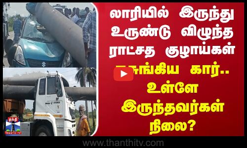 லாரியில் இருந்து உருண்டு விழுந்த ராட்சத குழாய்கள் - நசுங்கிய கார்.. உள்ளே இருந்தவர்கள் நிலை?
