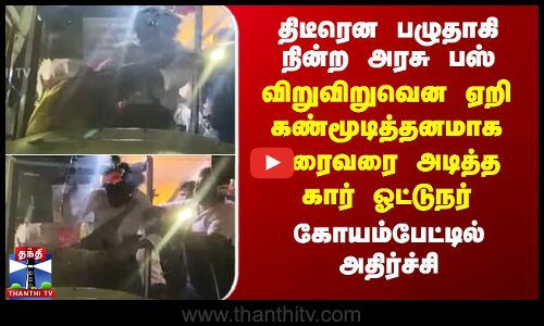 Chennai | திடீரென பழுதாகி நின்ற அரசு பஸ்-விறுவிறுவென ஏறி கண்மூடித்தனமாக டிரைவரை அடித்த கார் ஓட்டுநர்