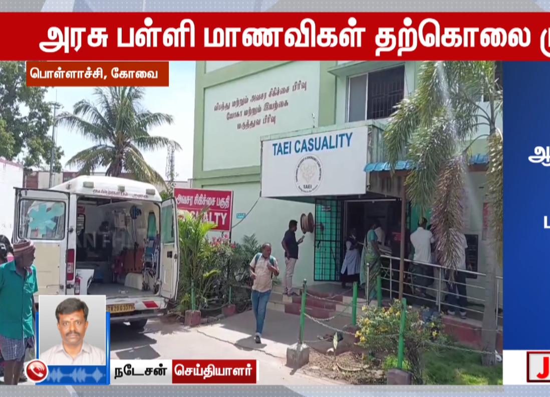 கோவை, பொள்ளாச்சி அருகே கஞ்சம்பட்டி அரசு பள்ளியில் 3 மாணவிகள் தற்கொலை முயற்சி/3 மாணவிகள் சாணி பவுடரை குடித்து தற்கொலை முயற்சி/ஆசிரியர் கண்டித்ததால் மாணவிகள் சாணி பவுடரை குடித்ததாக தகவல்/பொள்ளாச்சி அரசு மருத்துவமனையில் மாணவிகளுக்கு தீவிர சிகிச்சை///பொள்ளாச்சி, கோவை
